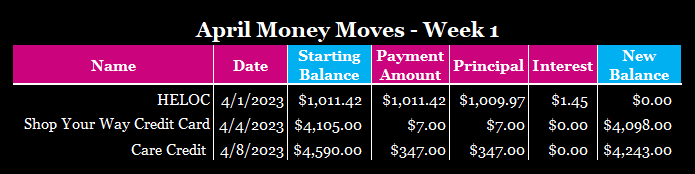 Last week, I made some pretty good progress with my money. The money moves I made were as follows: