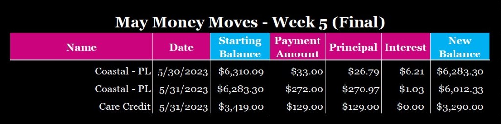 For my progress for this week, it was all about my personal loan and make a payment to my Care Credit card to clear the charge I made when seeing the dentist earlier in May:
