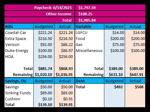 Now that we have my budget closed out, let’s talk about my plan for this pay period: