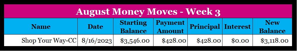 Check last weeks 3M post to see what my debt numbers were beforehand. There is one thing that is pissing me off but what can you do? Care Credit is charging me interest because of some charges I made before that I actually paid down. Because of this. I got an extra charge of $11.60, that I immediately paid off. I could call them back but then they’d give me some excuse or lack there of when before, as long as I paid the transaction off before the due date (the 8th) I’d be good as gold. Well…I missed the pay date when I paid off PT. Now, they keep charging me after I called them to get more information and try to resolve the matter. As you all know, I don’t typically pay interest for credit card charges. I didn’t want to start it back up again, but here we go. Good news is this won’t last long. I’ll have my care credit card paid off by December. There’s always a story to tell when it comes to finances. It’s like they’re a living breathing thing in an of themselves.