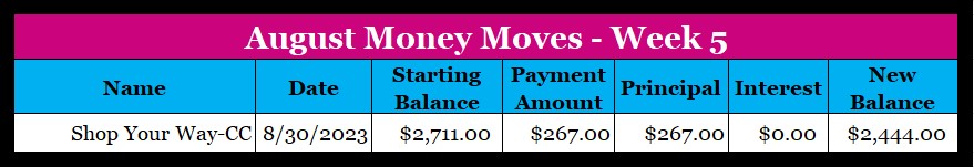 Things are going great getting this credit card paid down. Right now I’m set to pay it off at the beginning of November and things are on track to hit that goal.