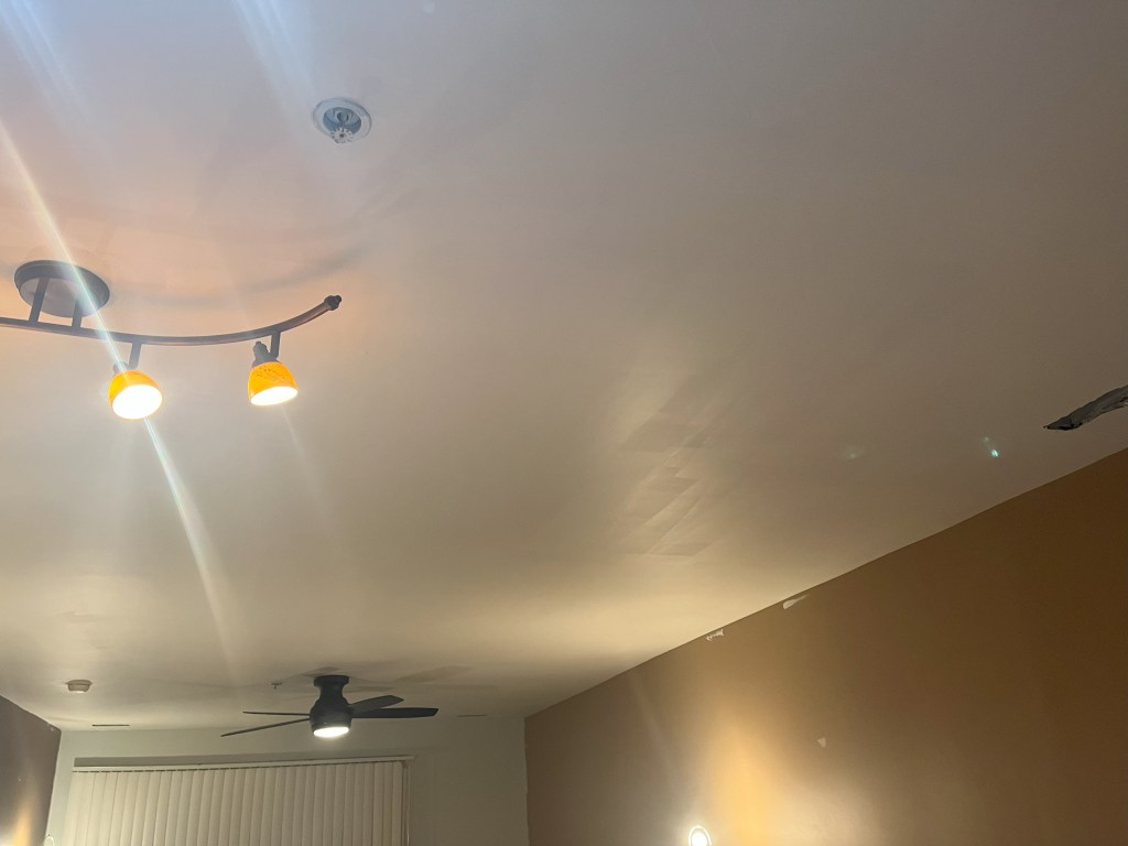 When I get home, I’m HIGHLY disappointed. The one wall that was done was done sloppily. No tape was used, there was no precision at all even though I provided the supplies. The wall color was on the white ceiling and the ceiling is EXTREMELY streaky. There’s an old patch job that I purchased supplies to correct that was painted around and not fixed. There was paint on my light fixtures. So, I reached out to the person who referred me who doesn’t exactly have an eye for this type of thing. They thought things were moving along well until I pointed out the issues. I complained to them about how frustrated I was but tried my best to stay optimistic.