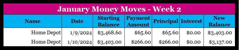 All I did was put money towards my Home Depot credit card but the balance is going down! For now, I’m paying down the balance associated with buying a new fridge before they started the repairs. The fridge was old…it leaked…it had to go. Once that balance is paid down, I’m going right back to paying down my Shop Your Way credit card and that will occur in the beginning of February. Fingers crossed everything goes well!