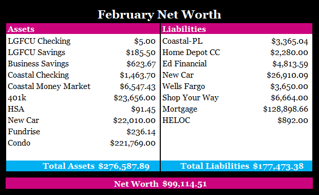 I did have an increase in debt with my HELOC that I kind of hate, but it didn’t affect my overall debt picture. This is extras from the trip and a few other things I’ve been doing. This HELOC balance will more than likely go higher because I’m going to have my vents and air ducts cleaned, replace my garbage disposal, fix the ceiling fan in my guest bedroom, have my A/C serviced (I think it may have died), and have my doorbell fixed. This is the cost of homeownership. The only difference is my mortgage is significantly less expensive than rent for an apartment the size of my condo…so I can’t complain. Other than that, the numbers are going down!