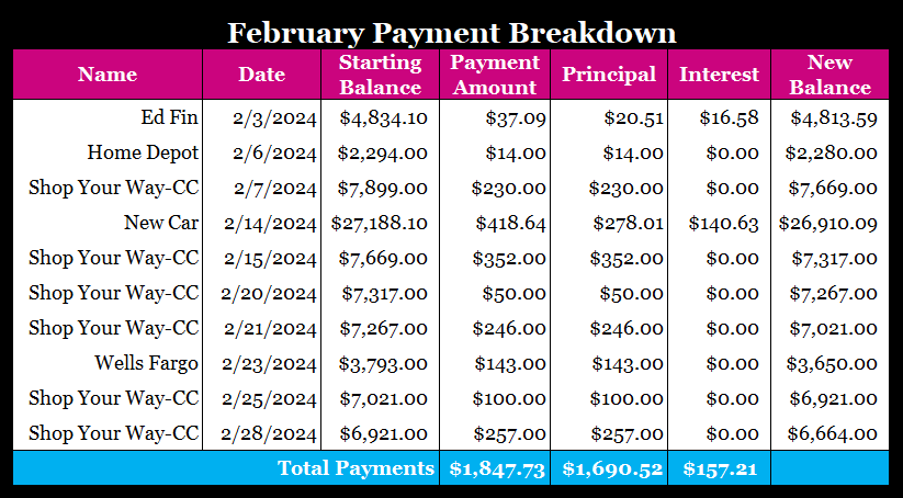 Payment Breakdown – February